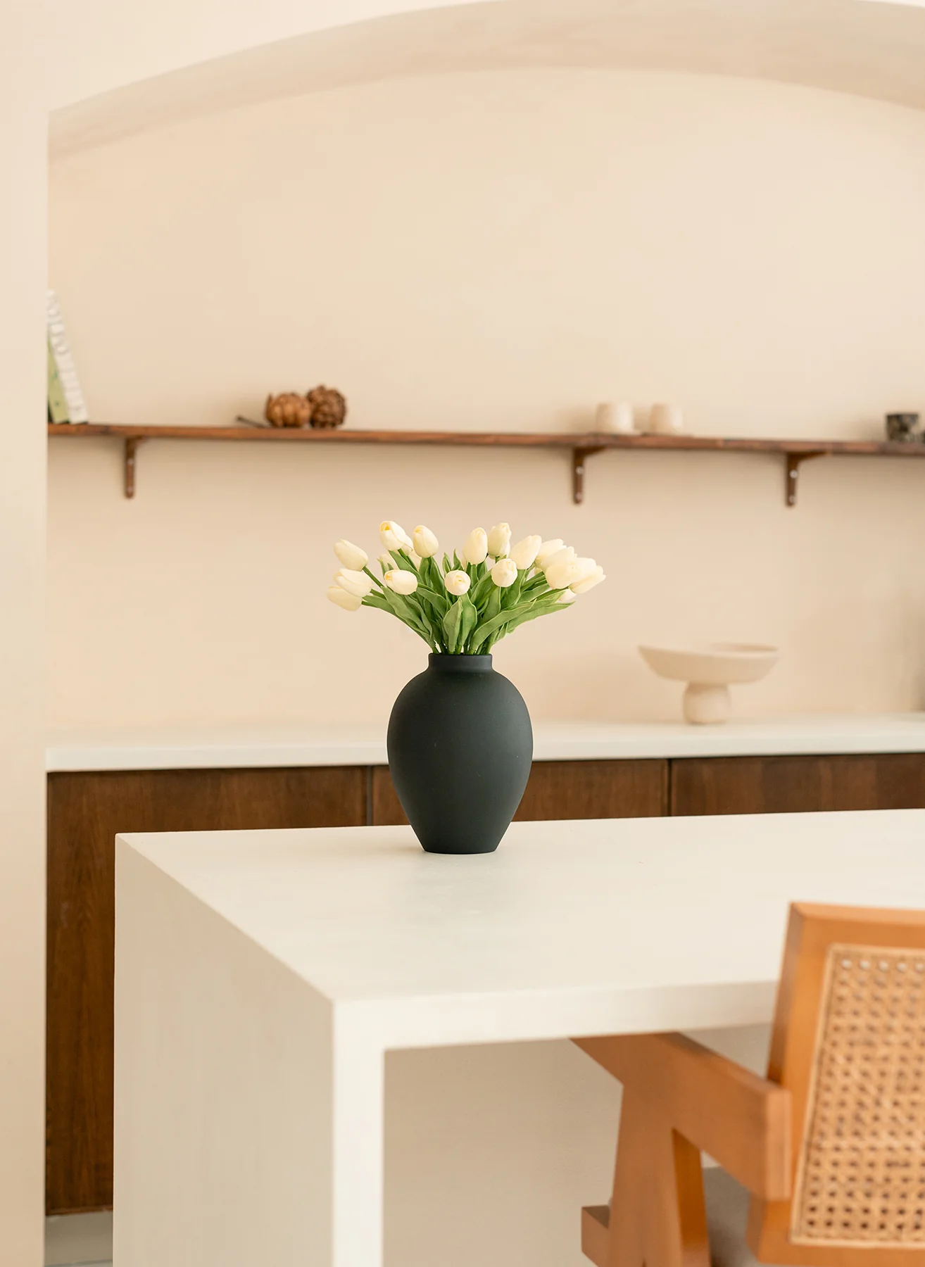 Door de strakke vormgeving en neutrale kleurstelling is het een veelzijdig stuk, ideaal voor het presenteren van verschillende soorten bloemstukken in zowel moderne als traditionele settings.