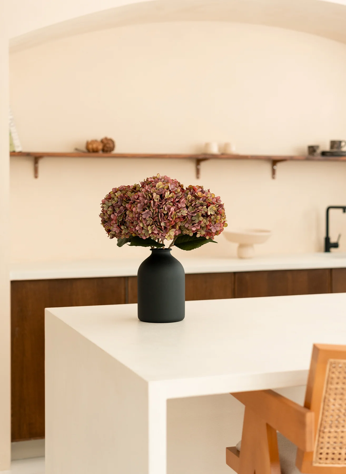 Dankzij de levensechte afwerking en zachte textuur voegt deze hortensia moeiteloos verfijning toe, zonder water of onderhoud.